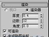 进入修改命令面板,在“渲染”卷展栏中选择“可渲染”,“生成坐标贴图”和“显示渲染网格”复选框;在视图中选中最开始绘制的两条翅膀曲线,在NURBS工具面板中单击“创建封口曲面”按钮,得到翅膀的曲面,切换至前视图,使用旋转工具使用其向上旋转一个角度。