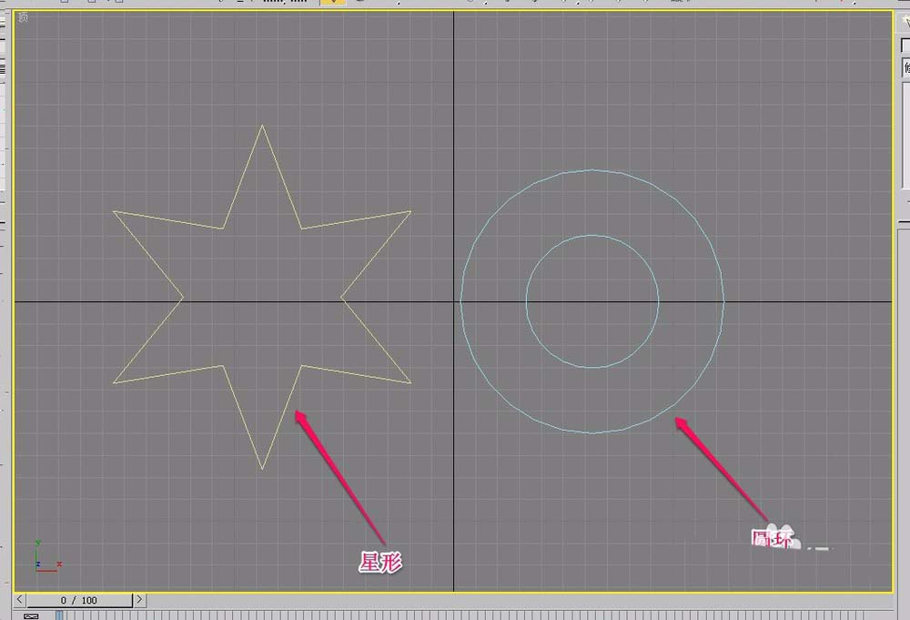 1、打开3ds max软件,在“顶”视图中新建一个圆环和一个星形。