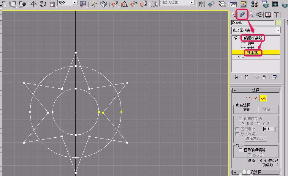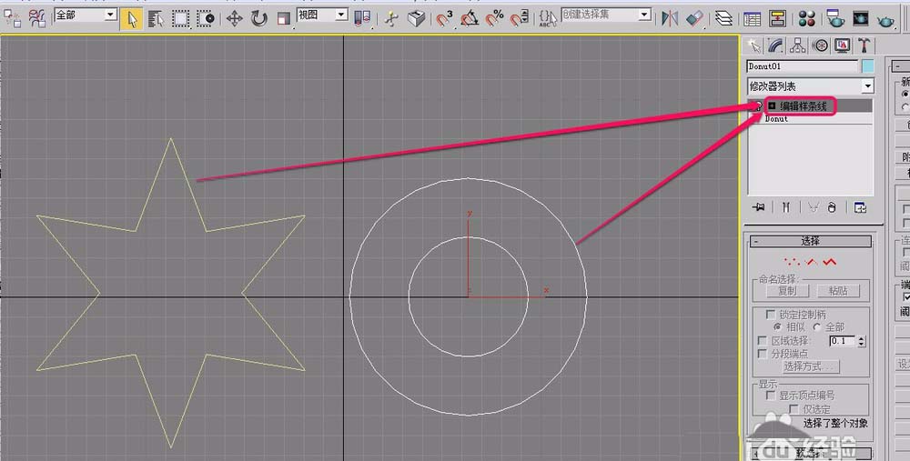 2、把圆环和星形都添加上“编辑样条线”修改器。