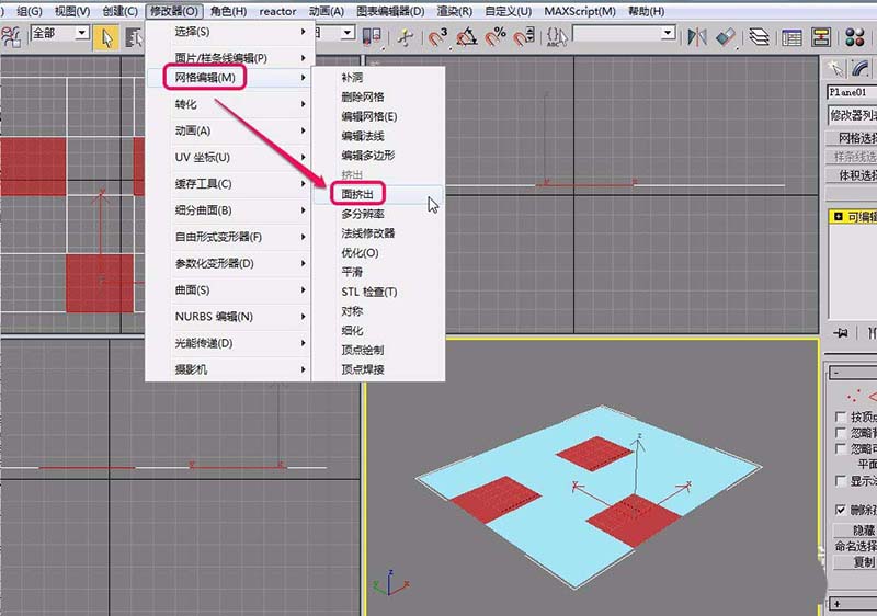 7、选择“网格编辑”项中的“面挤出”命令。