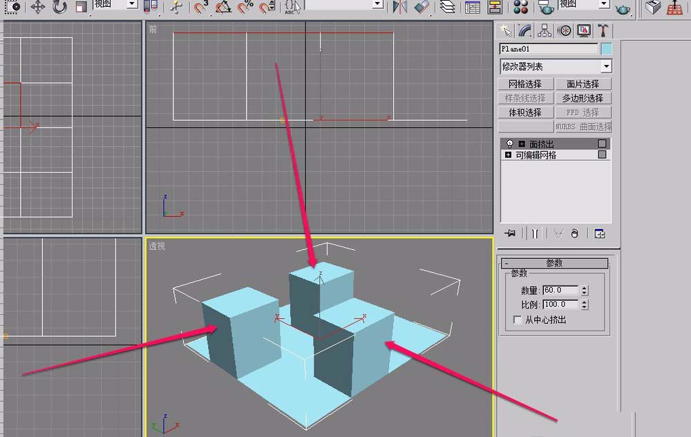9、可以看到,平面上已经被挤出了3个长方体。