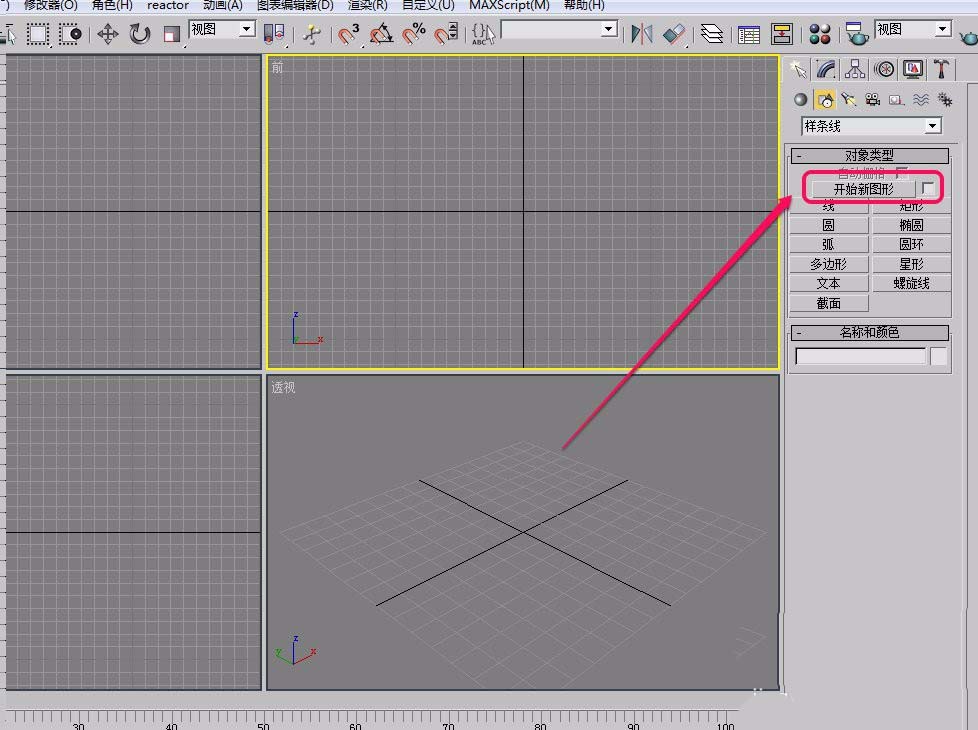 2、将“创建”选项卡中“几何体”项中的“对象类型”卷展栏打开,把“开始新图形”右侧的对勾去掉。