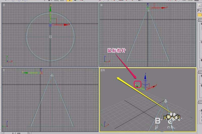 4、用鼠标沿着 y 轴方向,拖动自由聚光灯的局部坐标移动一段距离。