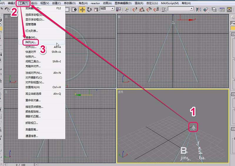 6、保持自由聚光灯被选中的状态下,选择“工具”菜单中的“阵列”命令。
