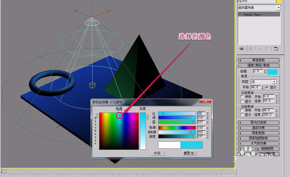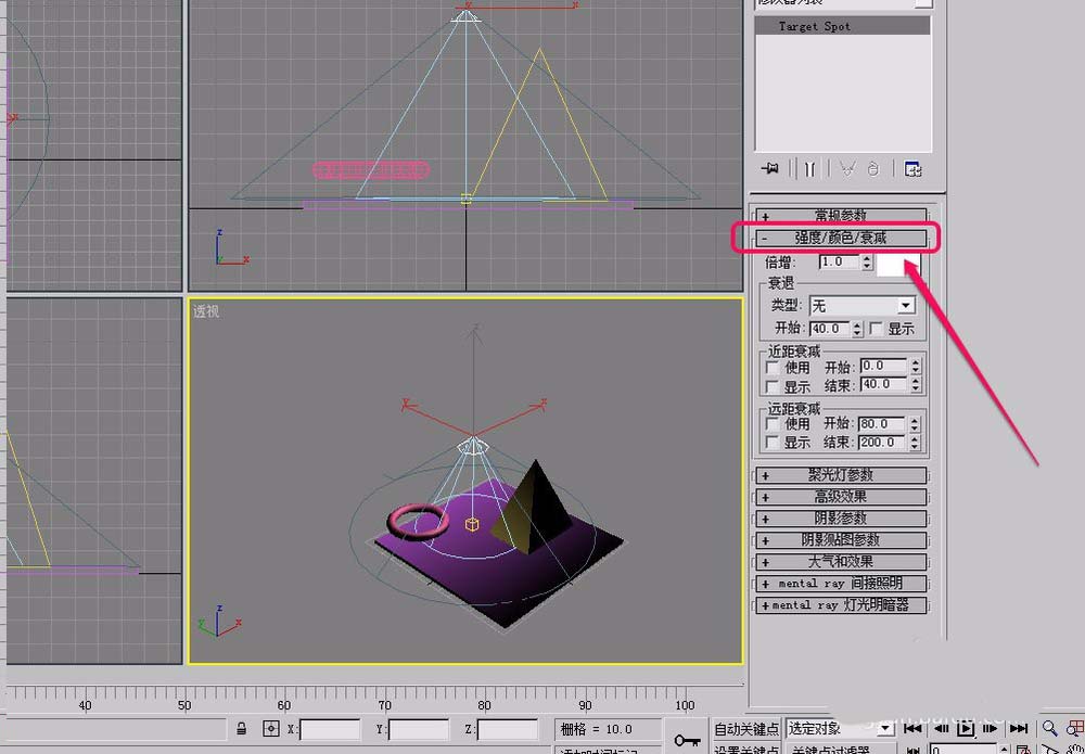 3dsmax中目标聚光灯想要设置灯光照射的强弱、颜色和衰减,该怎么设置呢?下面我们就来看看详细的教程。