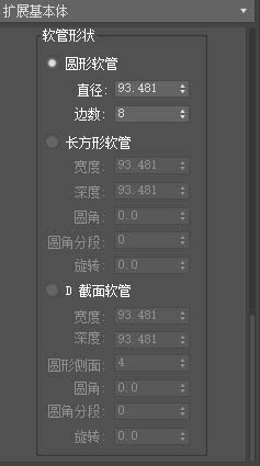 6、在右侧的下面还可以选择设置图形的形状,因为这个软管分为3种形状,剩下的还有长方形软管和D截面软管,我们都可以使用,如图