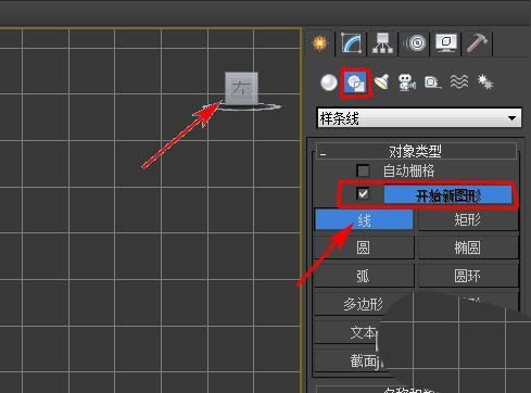 5、在命令面板单击“图形”创建二维“样条线”,选中“开始新图形”,选择“线”命令。