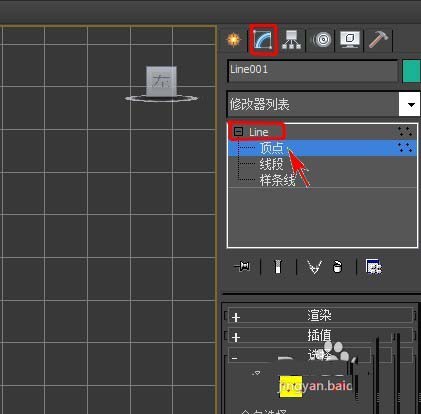 7、转到“修改”面板,点开“line”,选择“顶点”。