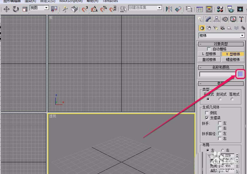 4、打开“名称和颜色”卷展栏,为楼梯选择一种颜色。