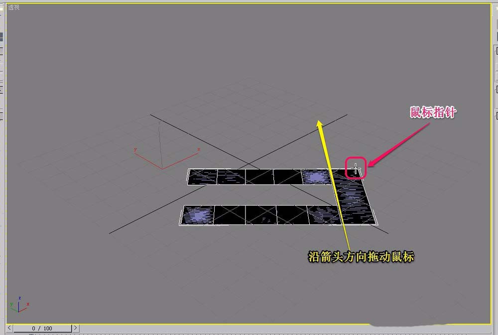 7、继续沿着黄色箭头方向拖动鼠标,创建出楼梯的宽度。