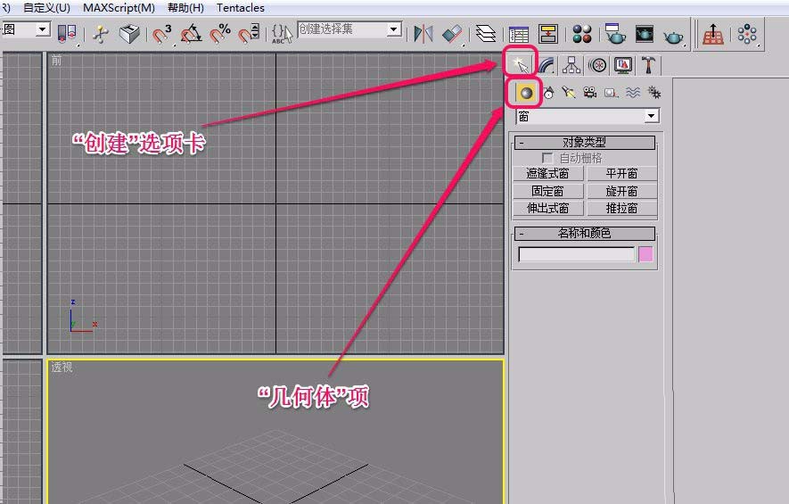2、打开“创建”选项卡,选择“几何体”项。