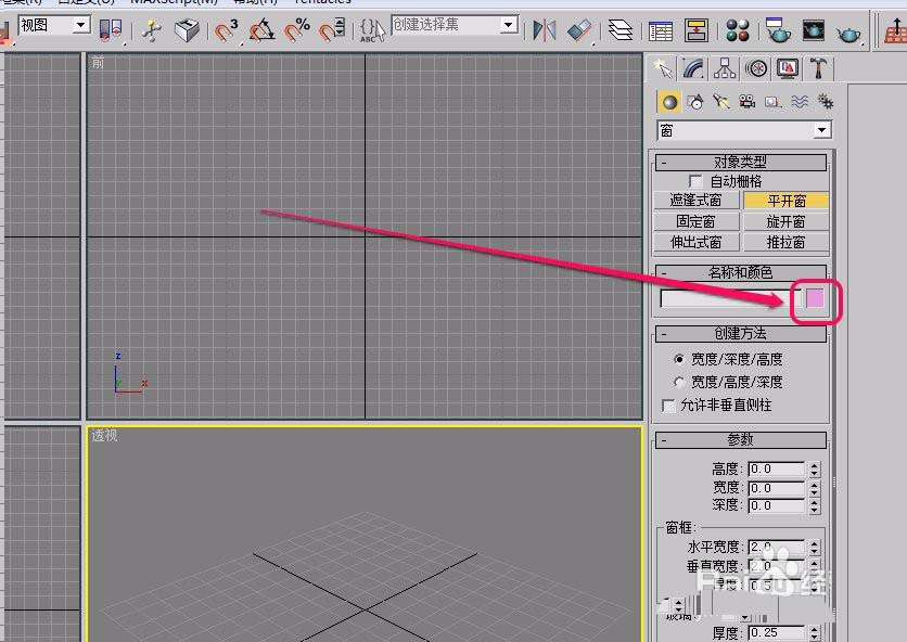 4、打开“名称和颜色”卷展栏,为将要创建的平开窗选择一种颜色。