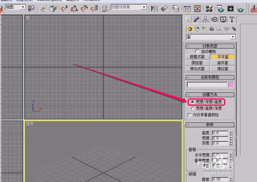 5、打开“创建方法”卷展栏,选择“宽度/深度/高度”创建方法。