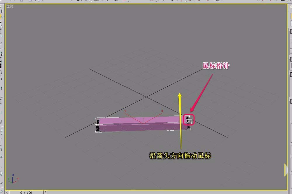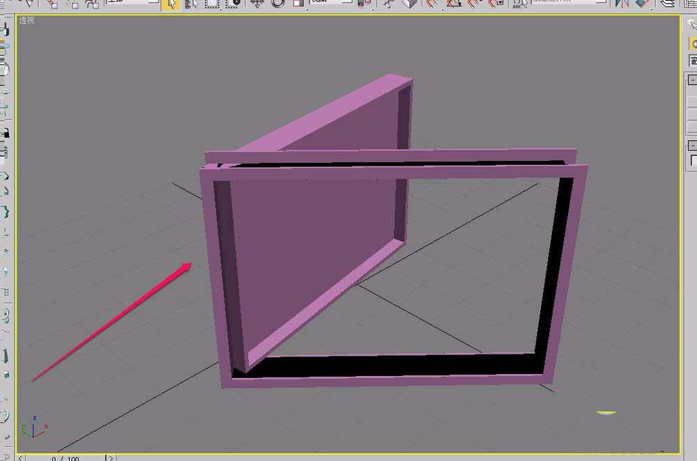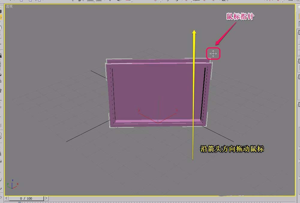 7、继续沿着黄色箭头方向,拖动鼠标,创建出平开窗的深度(厚度)。