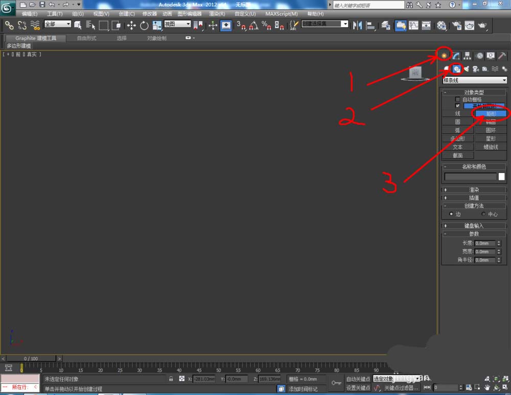 1、打开3Dmax2012软件,点击【创建】-【图形】-【矩形】,在作图区域绘制一个“2000*1000mm”的矩形线框。去掉右边【开始新图形】前面的勾,继续绘制一个矩形(如图所示);