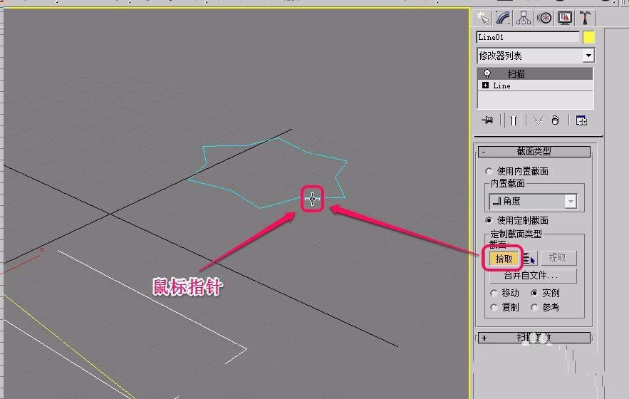 6、单击“拾取”按钮,将鼠标指针移动到多边形上面。当指针变成图示的样子后,单击鼠标。