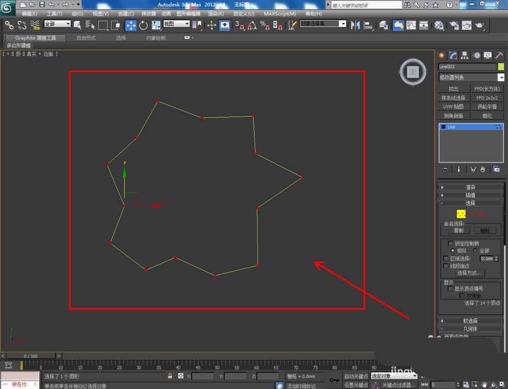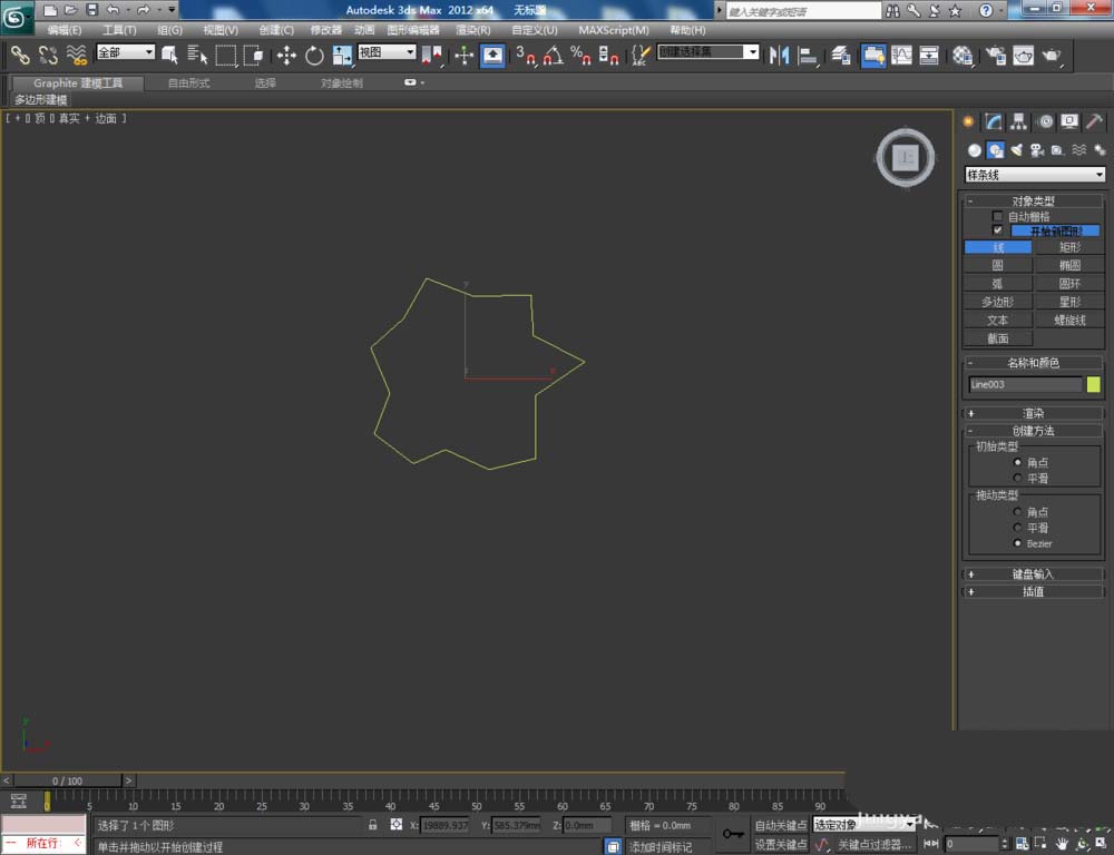 3、点击【创建】-【图形】-【线】,在作图区域绘制一个异形图案,点击工作区中的【点】,选中图案上的所有点后,点击鼠标右键选择【平滑】(如图所示);