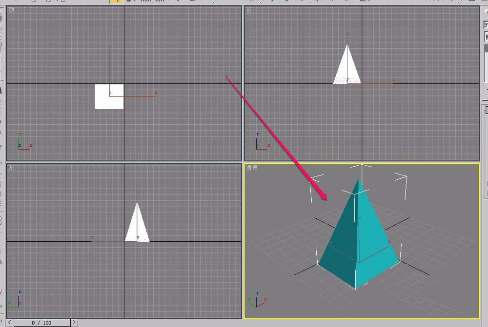 1、打开3ds max软件,在视图中创建一个四棱锥。