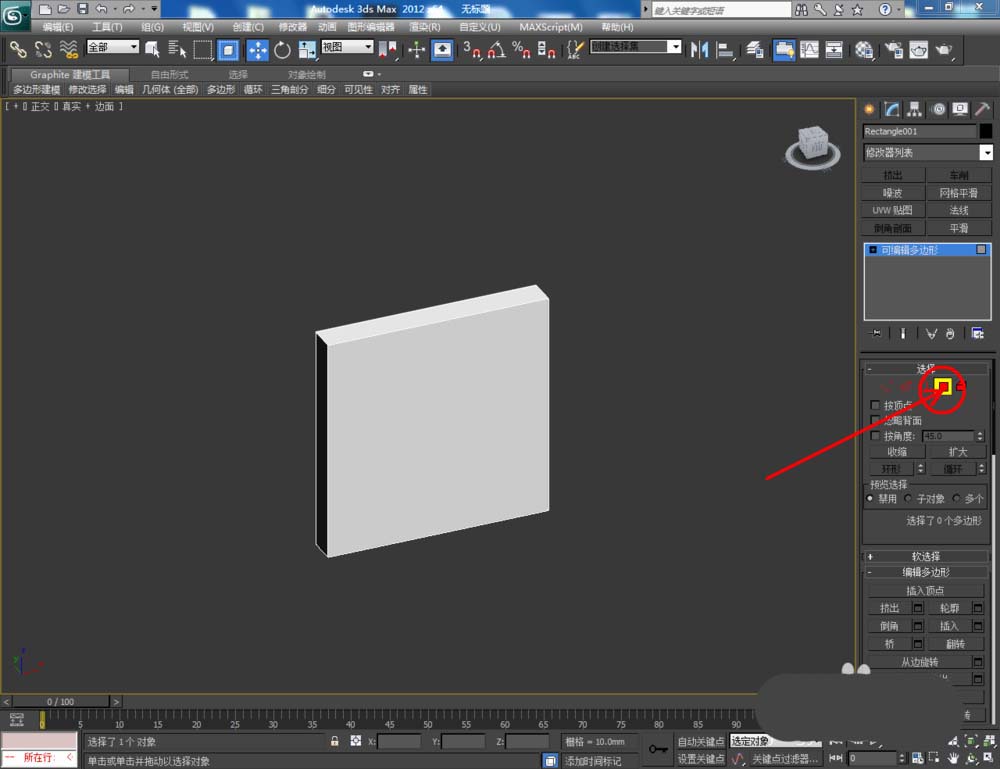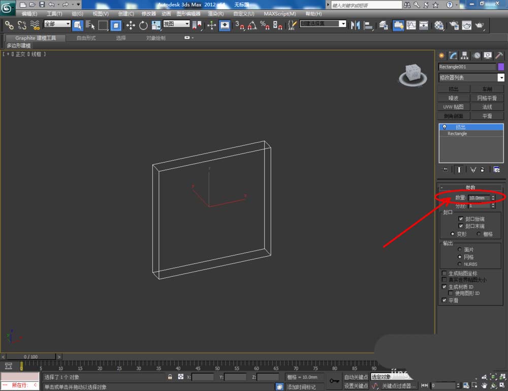 1、打开3Dmax2012软件,点击【创建】-【图形】-【矩形】,在作图区域绘制一个80*80mm的矩形图案(如图所示);