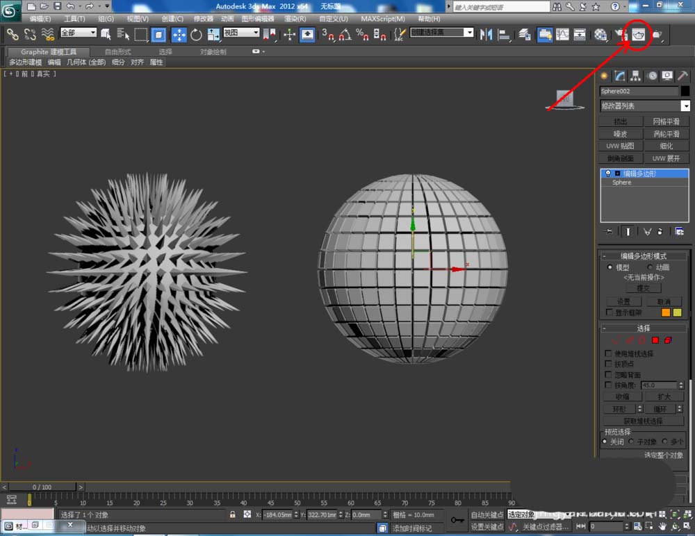 3Dmax中的可编辑多边形可以对模型进行处理,今天我们就来看看使用这个功能将圆球变成刺球的教程。