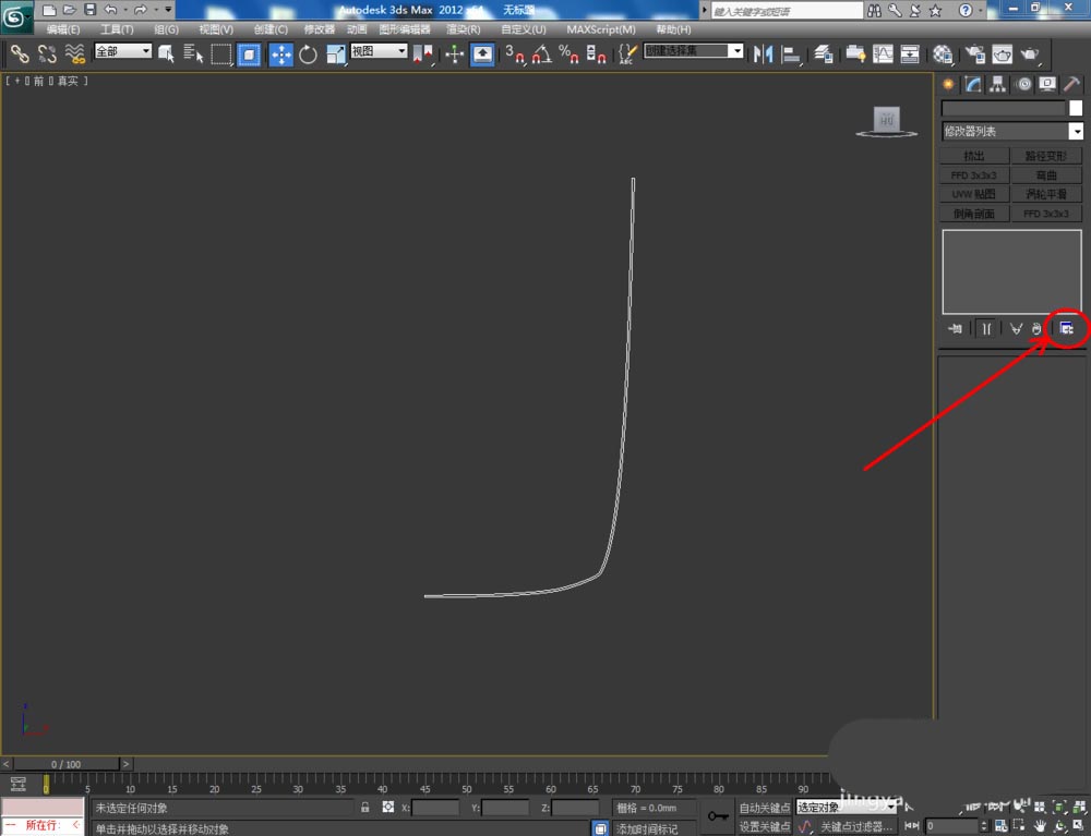 1、打开3Dmax2012软件,点击【创建】-【图形】-【线】,在作图区域绘制一个线段图案。点击右边工作区中【顶点】图标,对图示图案上的点进行圆化处理。点击【样条线】,选取样条线,对样条线进行轮廓操作(如图所示);