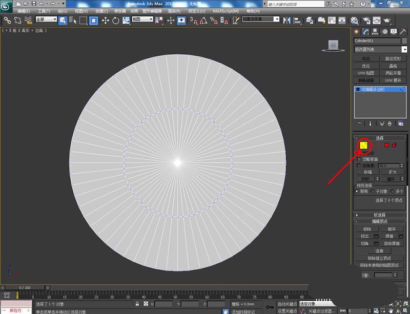 2、选中模型,点击鼠标右键-【转换为】-【转换为可编辑多边形】。点击【顶点】图标,选中图示模型上的点进行缩放操作(如图所示);