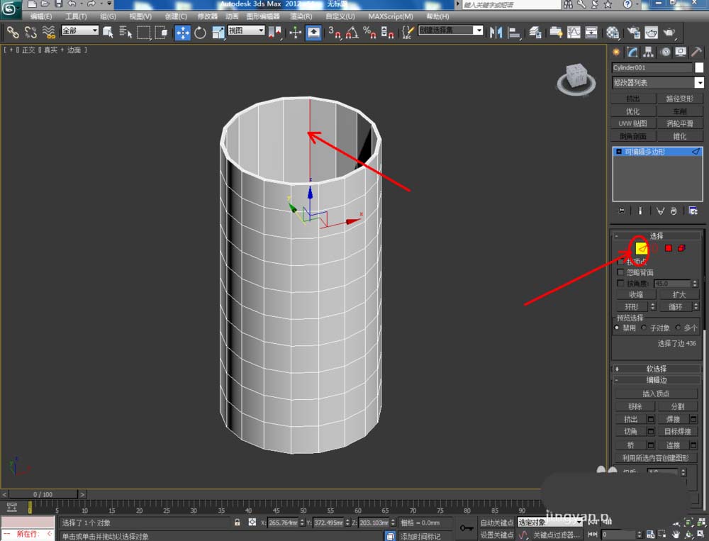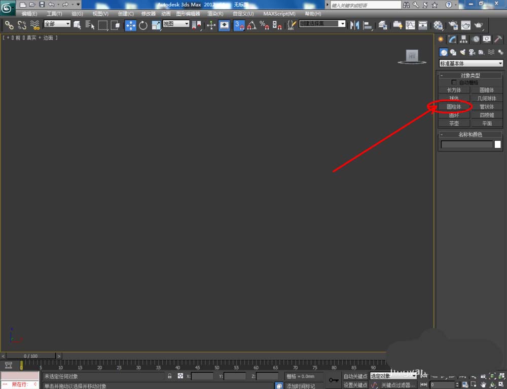 1、打开3Dmax2012软件,点击【创建】-【几何体】-【圆柱体】,在作图区域绘制一个圆柱体模型并按图示设置好圆柱体的各个参数。选中模型,点击【对象颜色】将模型的对象颜色设置为:白色后,点击鼠标右键-【转换为】-【转换为多边形】;