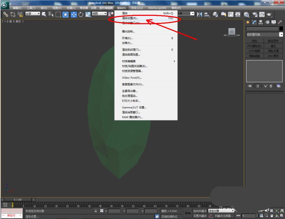 5、点击【渲染】-【渲染设置】,弹出渲染设置对话框,按图示设置好输出大小参数后,点击【渲染】将附好橄榄石材质的模型渲染出图即可。