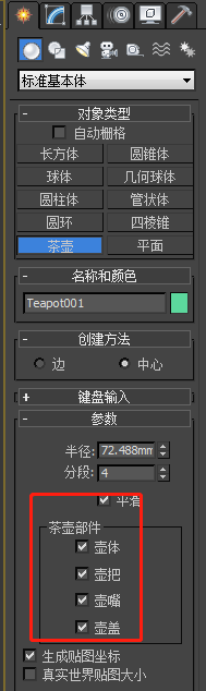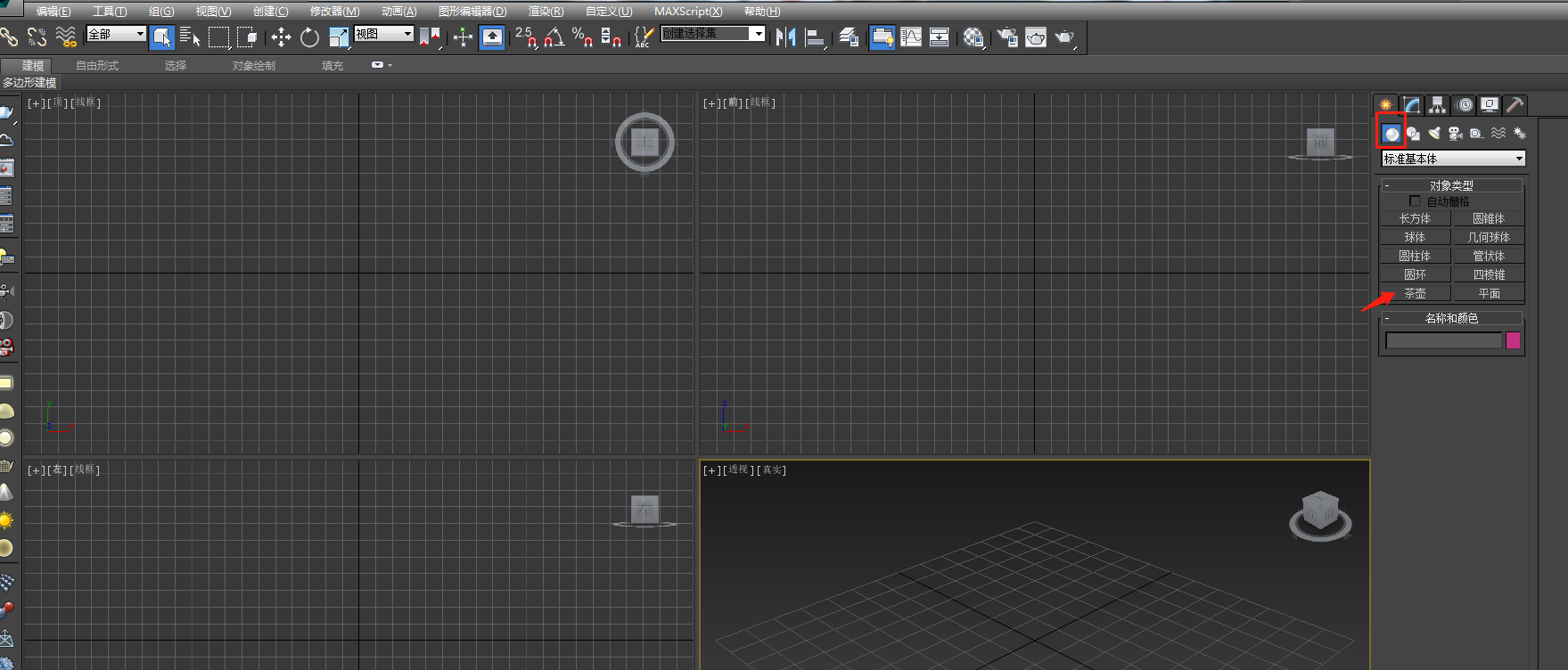 1、打开3D软件 找到右边工具栏中找到几何体选项找到茶壶选项 单击选项