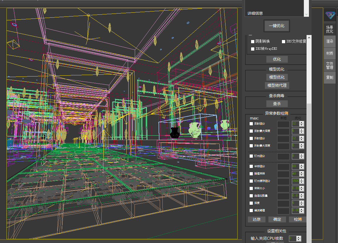 针对场景中空图层、空物体、缓存、丢失插件进行清理操作。