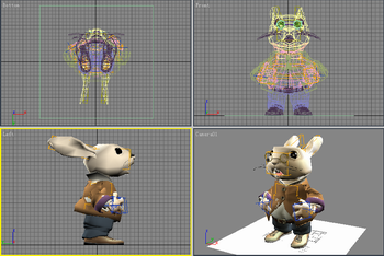 1. 启动3ds max。选取File/Open,从本书配套光盘中打开Samples\ch01\Ch01_01.max文件。场景中显示一个在3ds max中制作的兔子,见图1.18