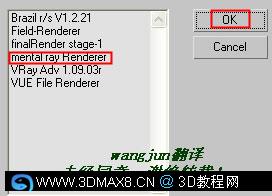 2、从“Choose Renderer”(选择渲染器)对话框中选定“Mental Ray”,然后点击OK。