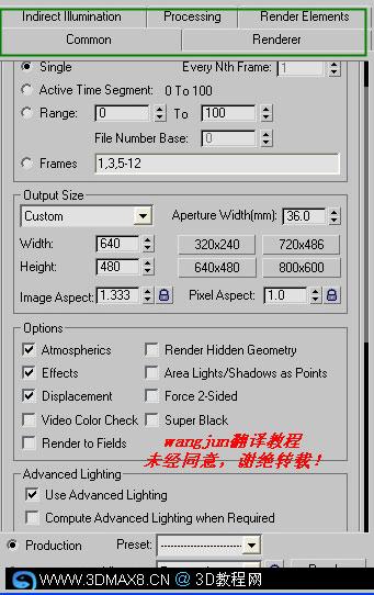 3、与默认的扫描线渲染器相比,此时渲染场景对话框发生了一些变化,如图。