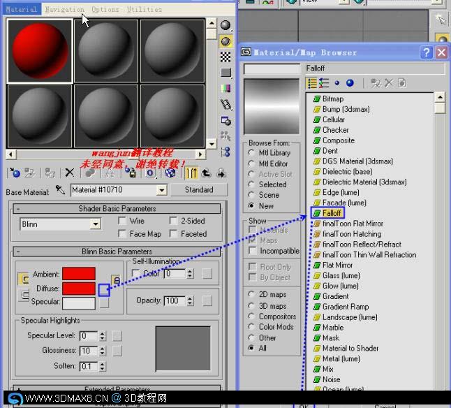 8、设置Diffuse贴图类型为Falloff,如图。