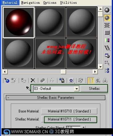 12、继续返回上一层级,设置shellac材质,如图。