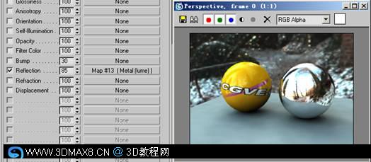下面是汽车的车灯的设置,车灯本身是一个反射非常强的表面相当于我们平时使用的镜子,这里我们知道可以直接使用光线追踪技术来实现一个完全反射的金属是相当容易的,这里我们还可以选择使用使用在反射通道上加载Metal(lume) 来实现。这也是我们制作真实的反射模糊金属的时候将要使用到的贴图类型。这里可以看到反射的结果还是非常另我们满意的,这种材质适合作为车灯的表面使用,这里要说的是我们一般情况下是先将想要的材质单独使用球或者其他的简单的样品来做渲染和调整当差不多的时候在赋予给实际的物体。
