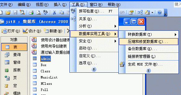 4。执行上面的“工具” --- “数据库实用工具”---“压缩和修复数据库” 。如图: