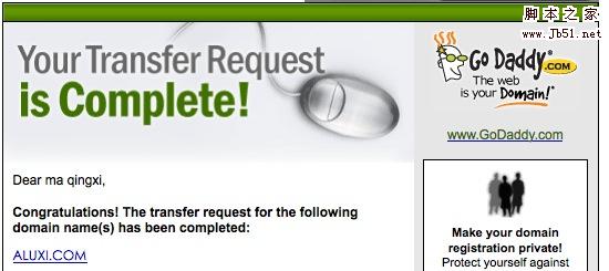 5天,你会收到 Go Daddy 的邮件,恭喜你域名转移成功。