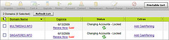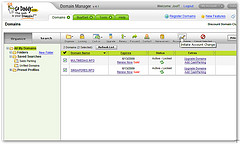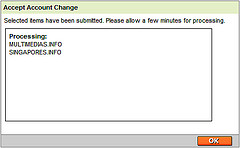 同时,在你的账户中相关的域名也会显示域名过户的状态 "Changing Accounts" 。此时,你将不能对域名进行任何修改和操作,直到域名转到对方账户。