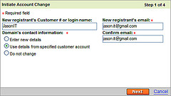 你还可以自定义过户买家信息填写点击中间的 "Use details from specified customer account" 。然后选择下一步 "next" 按钮。 (跟多信息请查看: "Godaddy官方转移介绍 [英文]" 第5到第11部分)