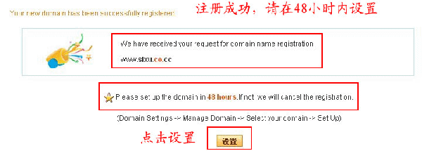 7.注册成功,需在48小时内进行设置(使用)、否则将被删除,点击设置。如图7: