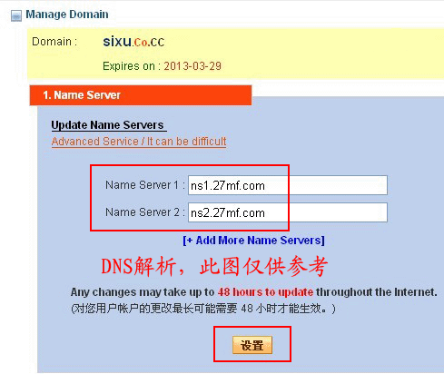 8.这里进入域名管理栏目,点击设置。如图8: