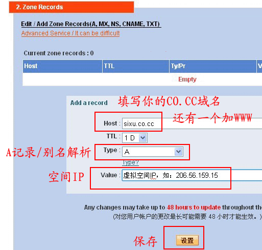 友情提示:以上就是co.cc免费域名使用的全部方法,DNS解析一般需要1-48小时、A记录(30分钟左右)、网址转发(及时)如果有任何不懂可以随时给我留言!文章出自:http://www.27mf.com 转载请注明出处!