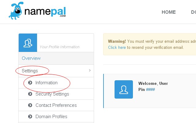 4:进入账户页面后如图点击Settings目录下的Information填个人资料。