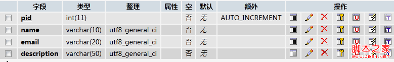 数据库表结构如下,连接数据库代码就不贴出了,记得把编码设置为UTF-8就行了。