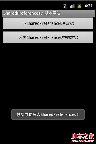 Toast.makeText(this, "数据成功写入SharedPreferences!" ,