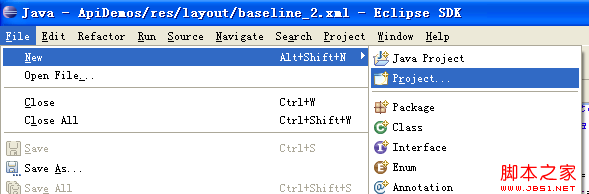 一番倒腾后,我发现,Eclipse已经提供了很方便的导入方法。那就是 "File -> New->Project -> Android Simple Project ”。下面是操作截图,一看即明,很简单。