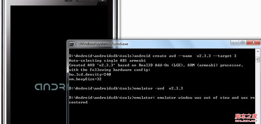 在cmd命令状态下进入android SDK安装目录之下的tools文件夹,并使用“android create avd --name v2.3.3 --target 3”创建一个叫“v2.3.3”(可以自行修改)的avd。