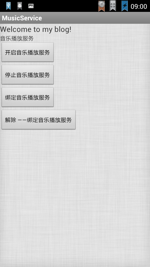 通过startService(),我们退出程序后,可以释放activty的资源,由于该服务还在后台运行着,所以我们的音乐还可以继续播放着,。就这样,我们就可以一边享受音乐,一边可以聊QQ,或者浏览新闻等等。