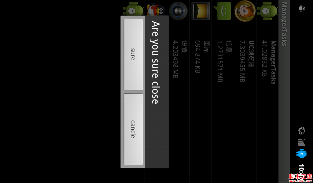 这个app主要是简单的实现了获取非系统的应用程序和一些常用的系统应用程序,显示在一个listview中,并添加了点击(回复到你打开的界面)和长按事件(关闭应用程序)。